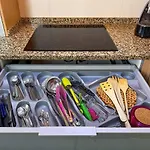 - ❓¿Hay una cocina disponible en este alojamiento para uso de los huéspedes?Sí, este alojamiento está equipado con una cocina completa y ofrece también una nevera, un horno y menaje de cocina.